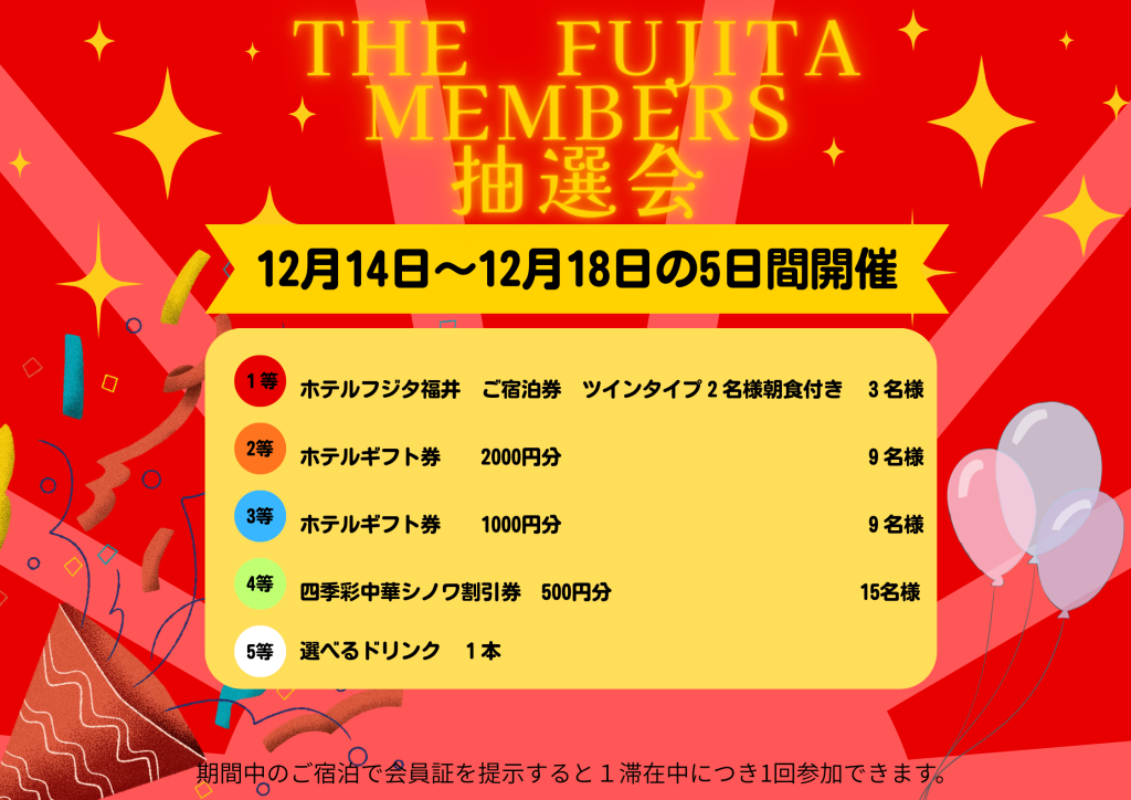 THE FUJITA メンバーズ会員または新規入会の方に抽選くじの権利があります。
